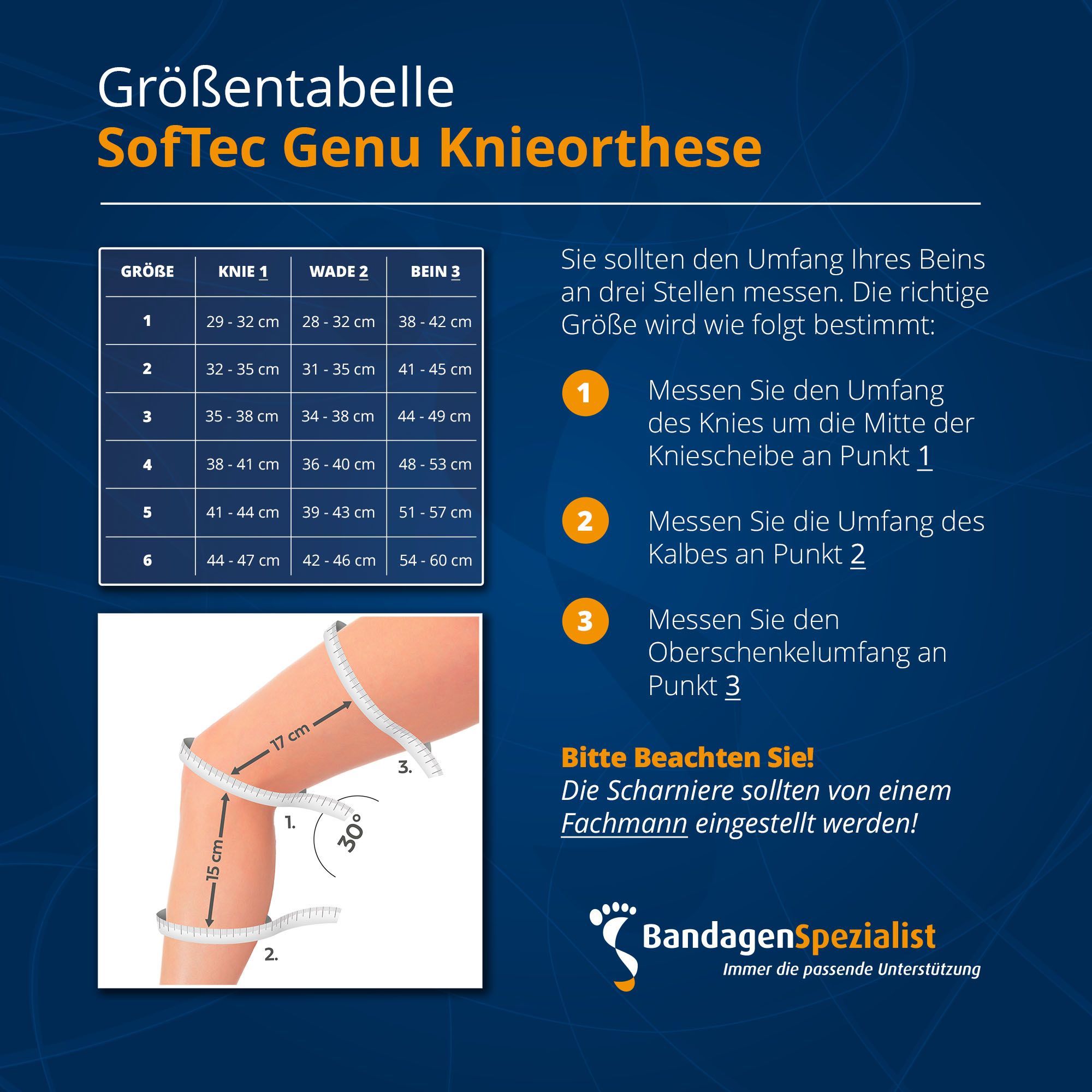 Die SofTec Genu ist eine multifunktionale Orthese, die das Knie schützt und führt. Dank der verstärkten Gelenke und individuell einstellbaren Bänder bietet diese Orthese maximale Unterstützung, selbst bei schweren Verletzungen oder nach einer Operation. Ideal für alle, die trotz schwerer Knieprobleme aktiv bleiben möchten. Die Gelenke dieser Knieorthese müssen von einem Fachmann eingestellt werden.