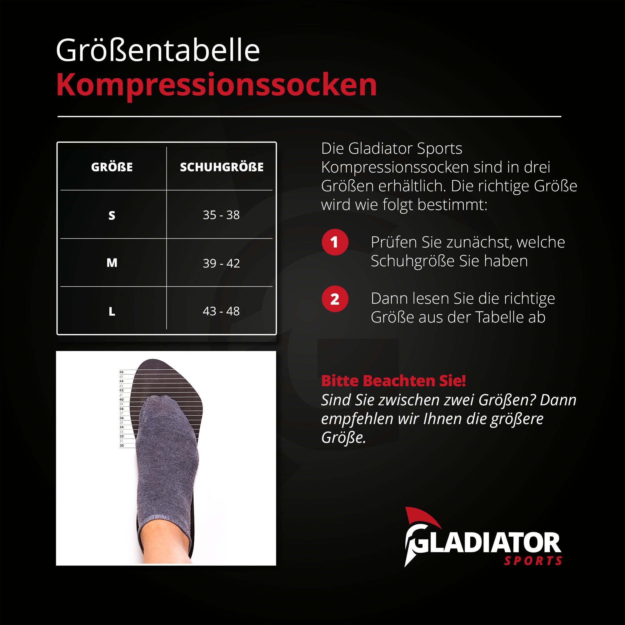 Die Kompressionssocken von Gladiator Sports üben gezielten Druck vom Knöchel bis zur Achillessehne aus. Dies fördert die Durchblutung und leitet Abfallstoffe schneller ab. Das Ergebnis: weniger Schwellungen, weniger Müdigkeit und weniger Schmerzen bei jedem Schritt.