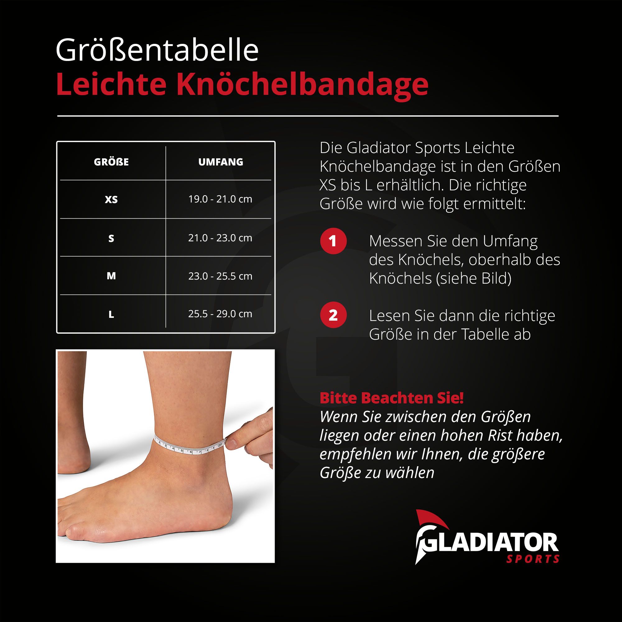 Die Gladiator Sports Leichte Knöchelbandage mit Bändern bietet gezielte Unterstützung bei Instabilität, ohne den Knöchel zu blockieren. Die Schnürsenkel sorgen für guten Halt und optimale Passform. Die Bändern werden kreuzweise um den Knöchel gewickelt und bieten zusätzlichen Halt, sodass der Knöchel bei Anstrengung oder unerwarteten Bewegungen gerade bleibt.