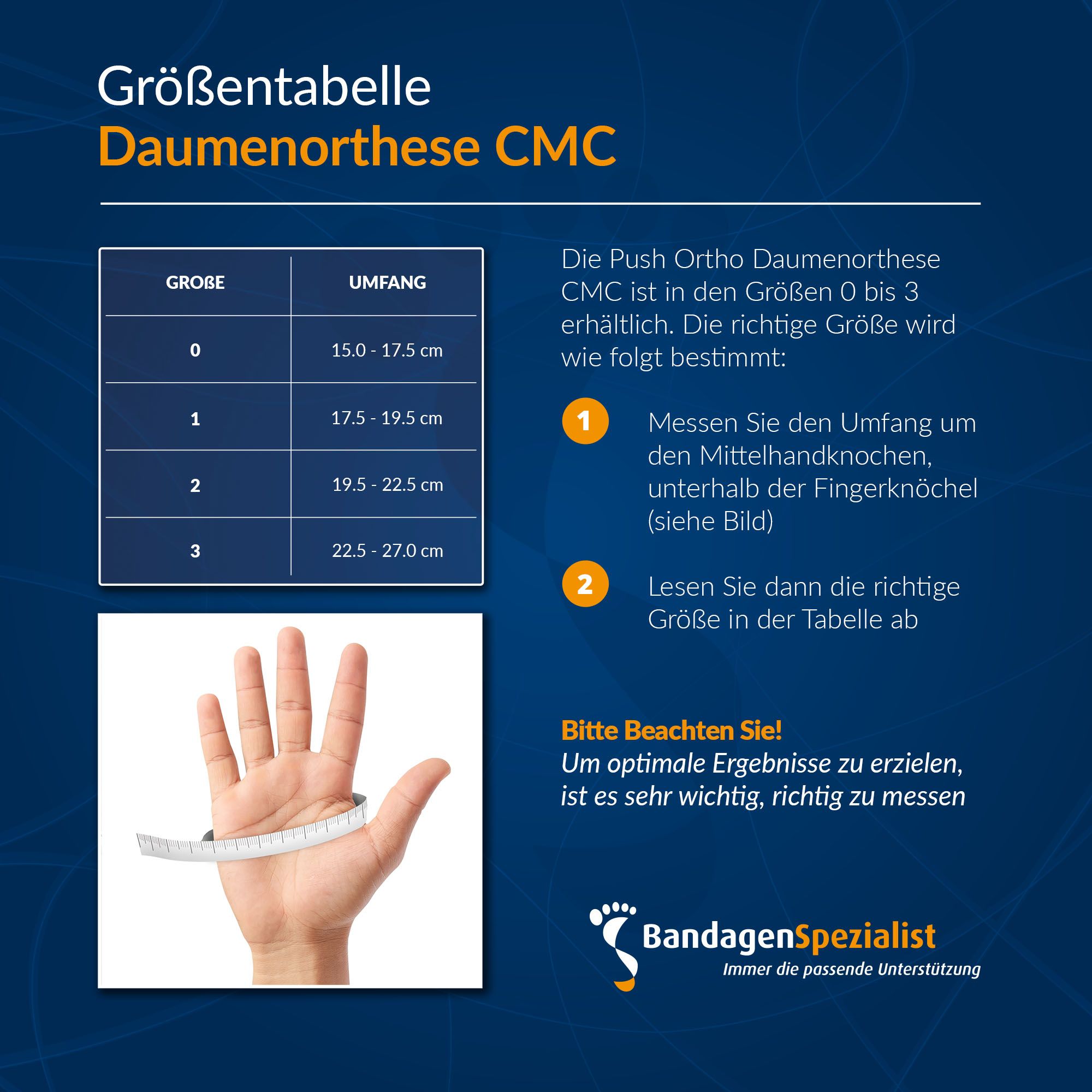 Die Push Ortho Daumenorthese CMC wurde speziell für Beschwerden im Bereich des Daumensattelgelenks, wie Arthrose oder Rheuma, entwickelt. Die Orthese bietet eine feste Stabilisierung, lässt aber den Rest der Hand frei, sodass Greifen und Bewegen mühelos möglich bleiben. Dadurch ist sie ideal für den täglichen Gebrauch, die Arbeit und den Sport.