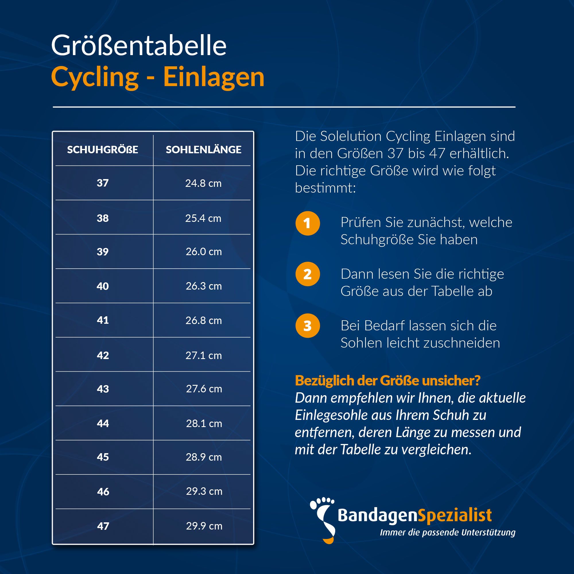 Die Solelution Cycling Einlegesohlen wurden speziell für Fahrradschuhe entwickelt und dämpfen die beim Radfahren entstehenden Vibrationen. Sie reduzieren Kribbeln, Brennen und Druckschmerzen im Vorfußbereich. Ideal für Rennradfahrer, Mountainbiker oder Freizeitradler, die bequemer und länger Rad fahren möchten.