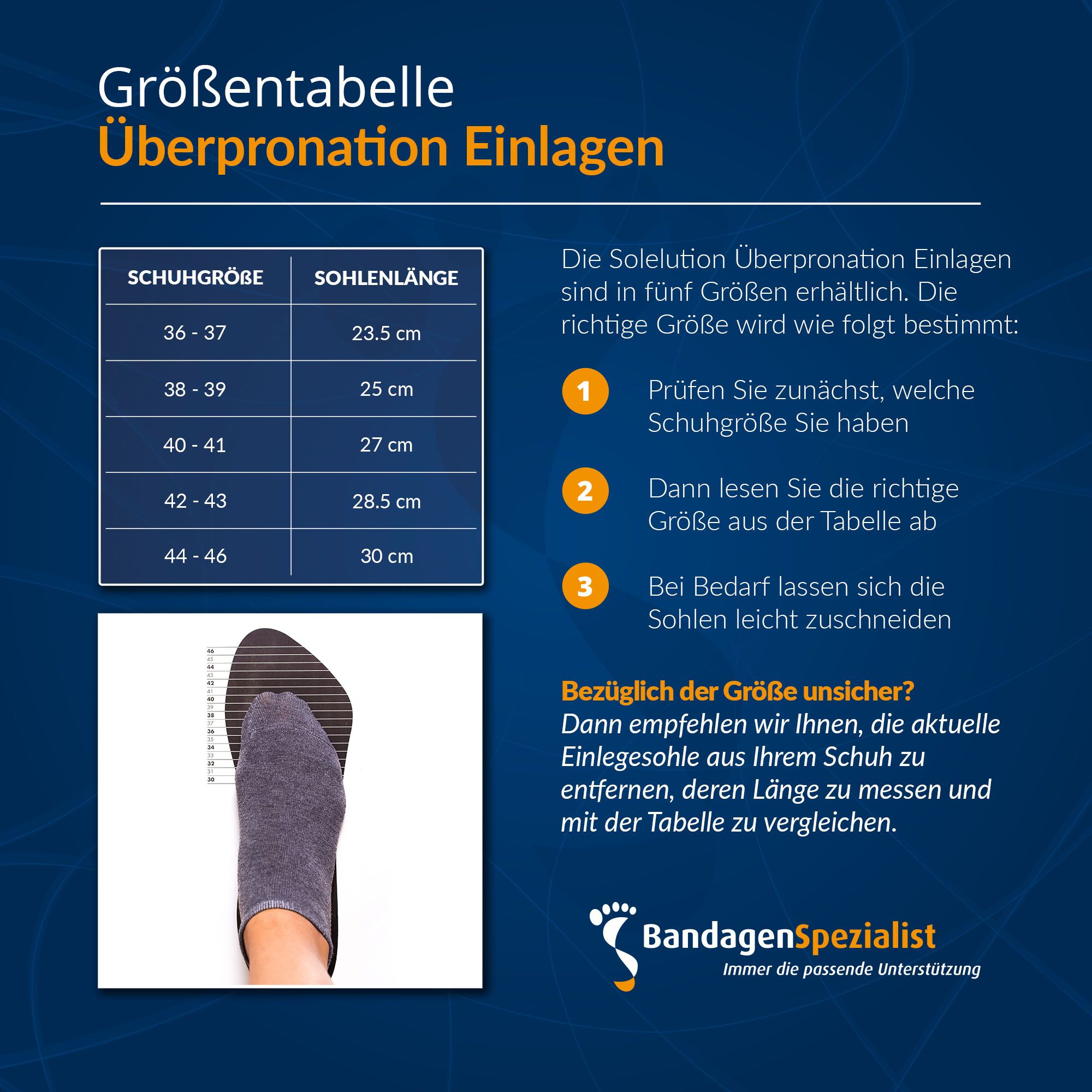 Die Solelution Überpronation Schuheinlagen bieten gezielte Unterstützung bei nach innen kippenden Füßen. Dank der halbflexiblen Fußgewölbeunterstützung und der tiefen Fersenschale korrigiert die Sohle auf subtile Weise Ihre Haltung und verteilt den Druck über den gesamten Fuß. Dies sorgt für ein besseres Gleichgewicht und weniger Belastung für Knie, Knöchel und Hüften.